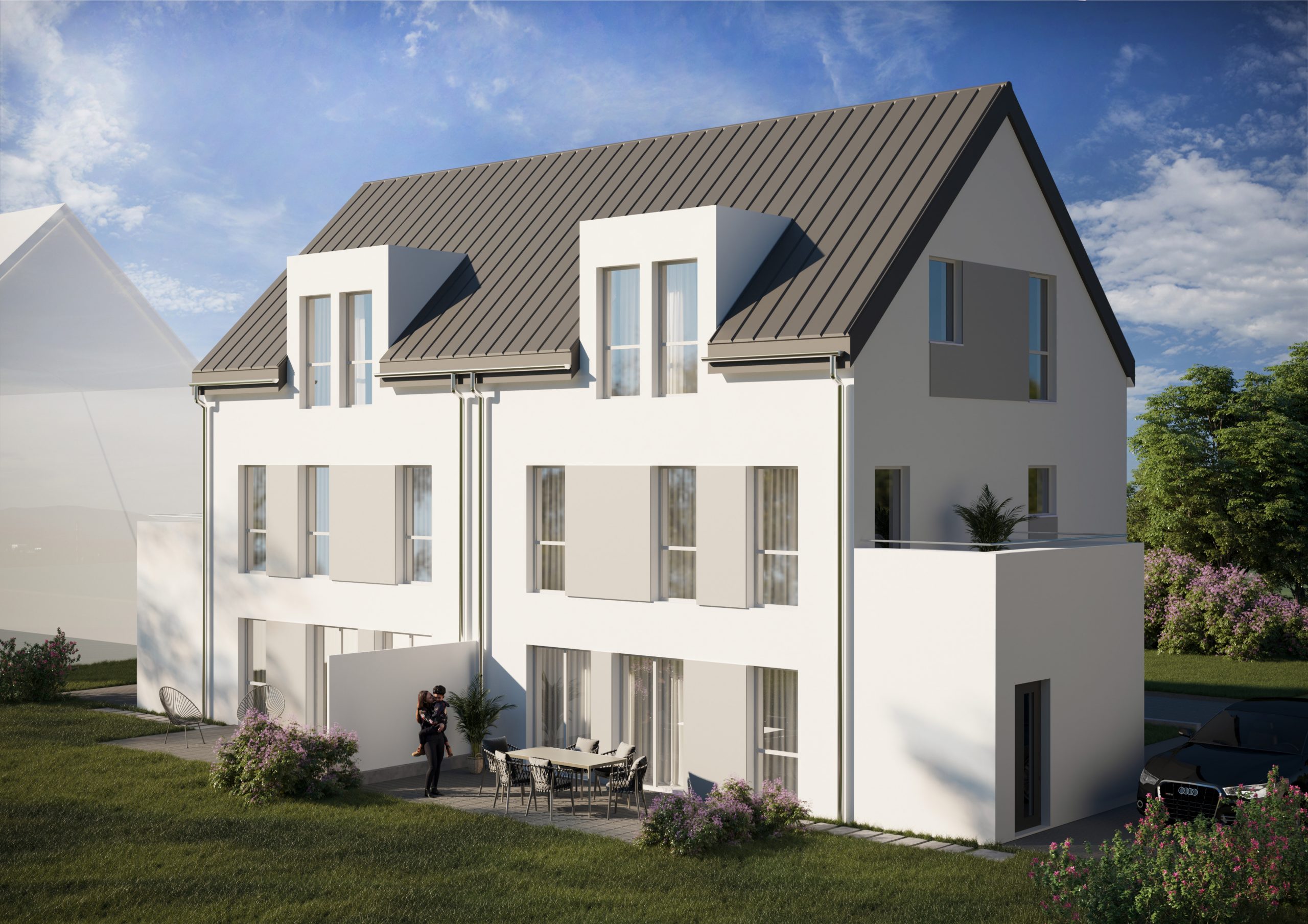 In der Frankensteiner Straße in Pfungstadt wurde ein Doppelhaus mit 345 m² Wohn- und Nutzfläche und einem Verkaufswert von 1,8 Mio. Euro errichtet.